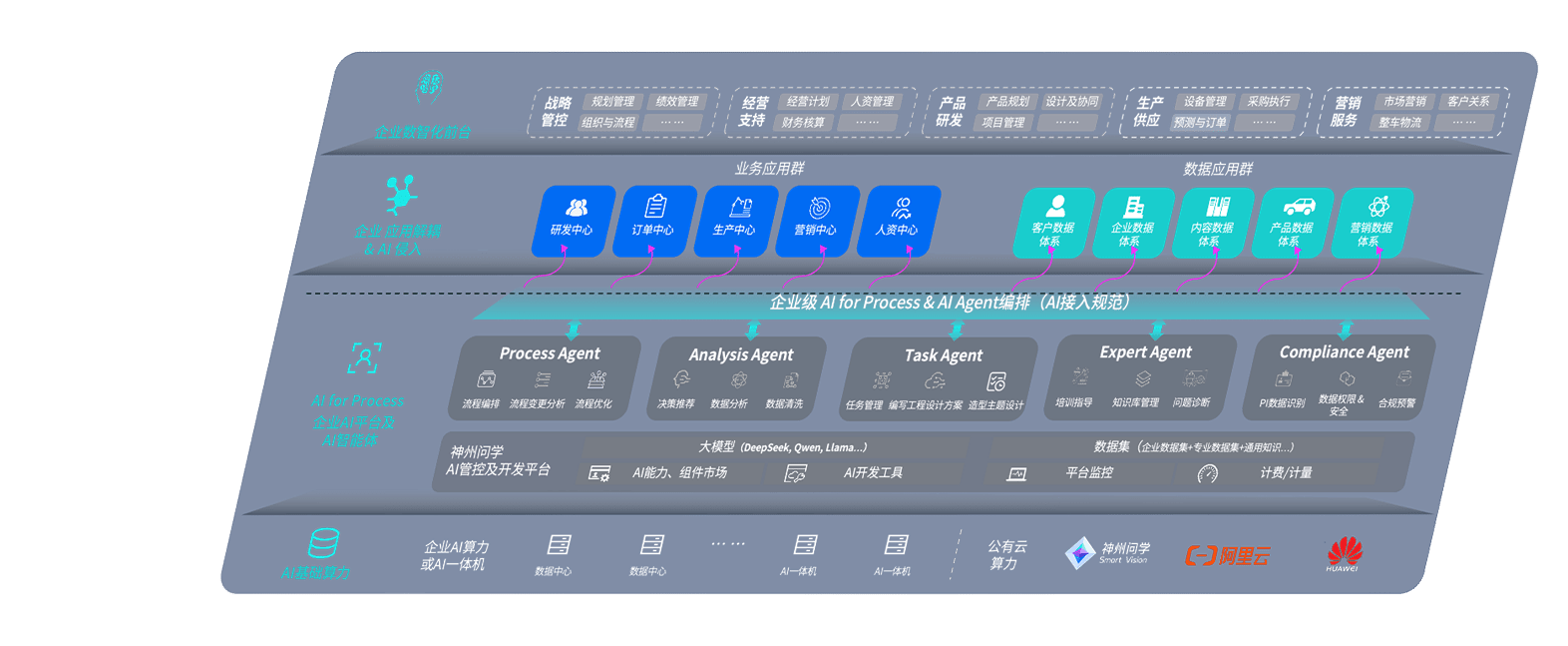 尊龙问学智车解决方案是一套基于AI技术的汽车行业智能化系统,,,,覆盖从底层算力到顶层AI应用的全栈方案。。。。方案由算力层、、模型层和应用层组成:算力层,,,方案支持多种一体机配置,,,,具备云端灵活部署、、、、多云适配以及动态优化计算资源的能力;模型层,,,,尊龙问学平台版提供了企业级AI应用一站式构建与管理平台,,,支持基于后训练强化技术的汽车企业专属模型的训练、、、评测和运营;应用层,,,,尊龙问学DeepSeek版提供包括超级员工、、智能招采、、、、智能营销、、智能客服、、、AI for BI等一系列解决方案,,可助力汽车行业实现数字化转型,,让管理更智能、、、、响应更敏捷。。